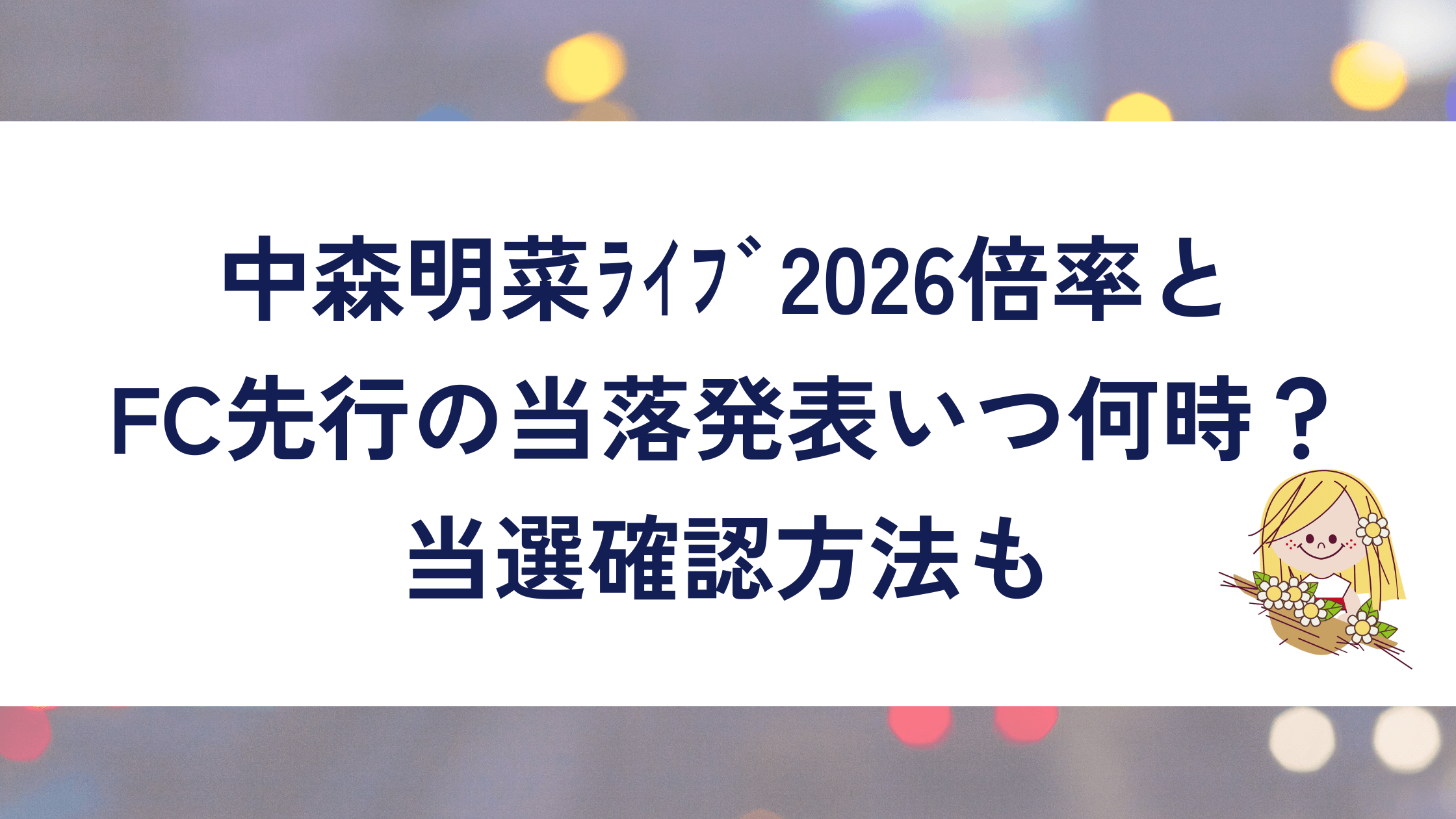 中森明菜さんの2026年ライブチケット、ファンなら「倍率どのくらい?」「FC先行の当落はいつ何時?」「どうやって確認するの?」と気になりますよね。