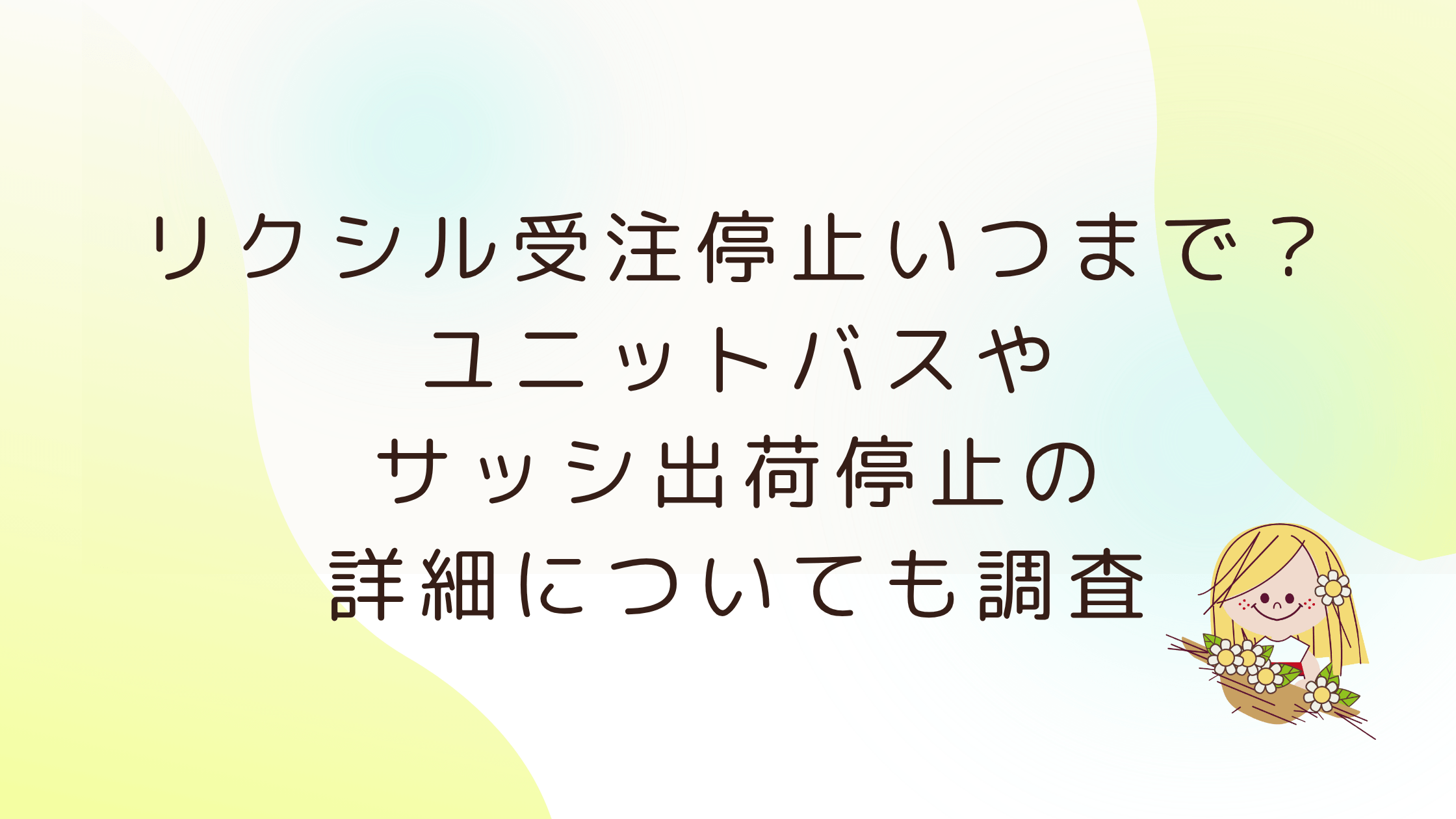 リクシル(LIXIL)やTOTOが、ユニットバスやトイレなどの新規受注を停止したという話です。