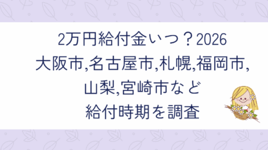 2万円給付金いつ?2026大阪市,名古屋市,札幌,福岡市,山梨,宮崎市など給付時期を調査