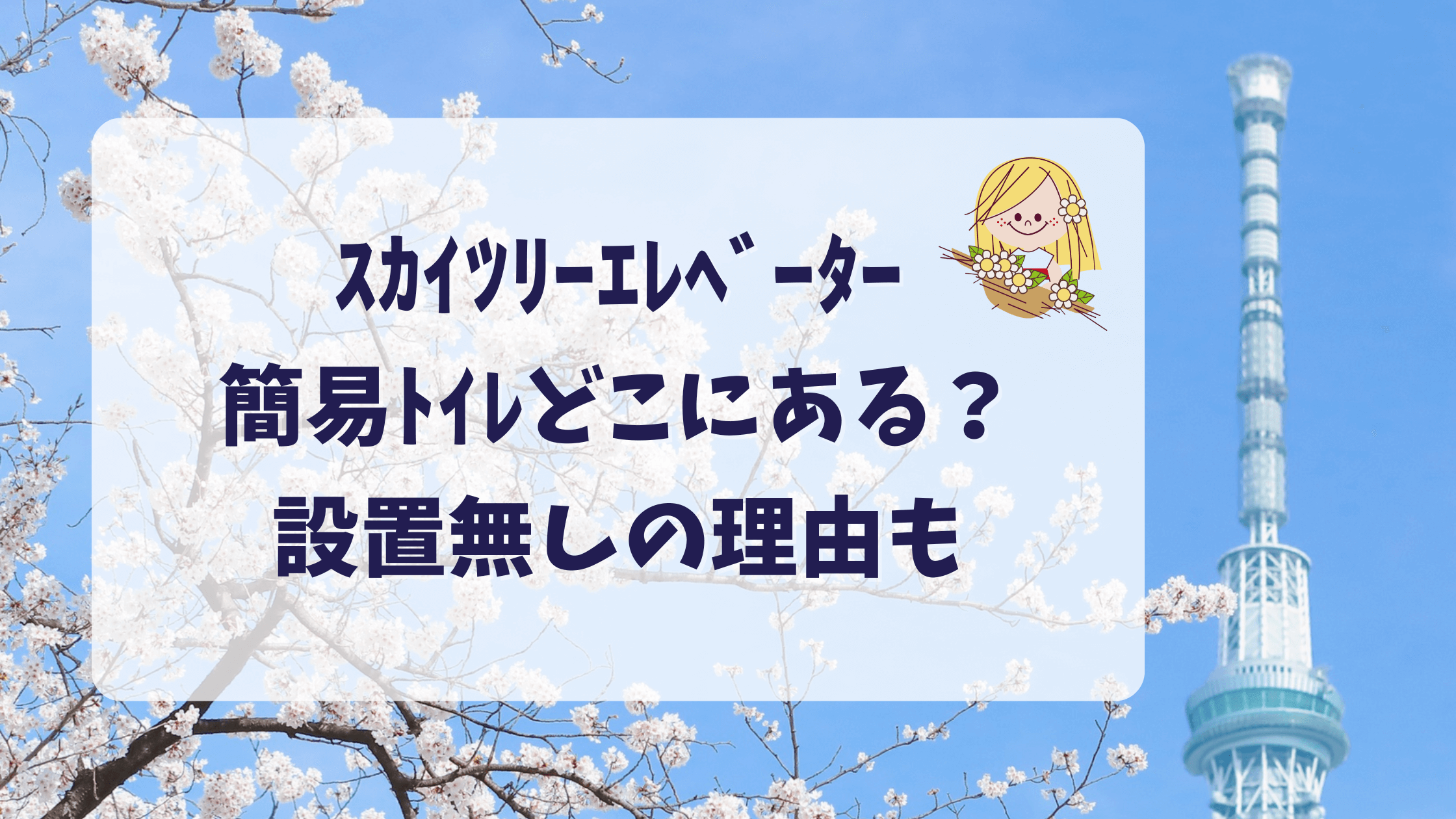 スカイツリーのエレベーターについては、「ボックスチェアが常設かどうかは施設ごとに違う」「携帯トイレ中心の備えの可能性もある」としつつ、設置の有無は公式には不明、当日スタッフに確認するのが確実、というスタンスのブログもあります。