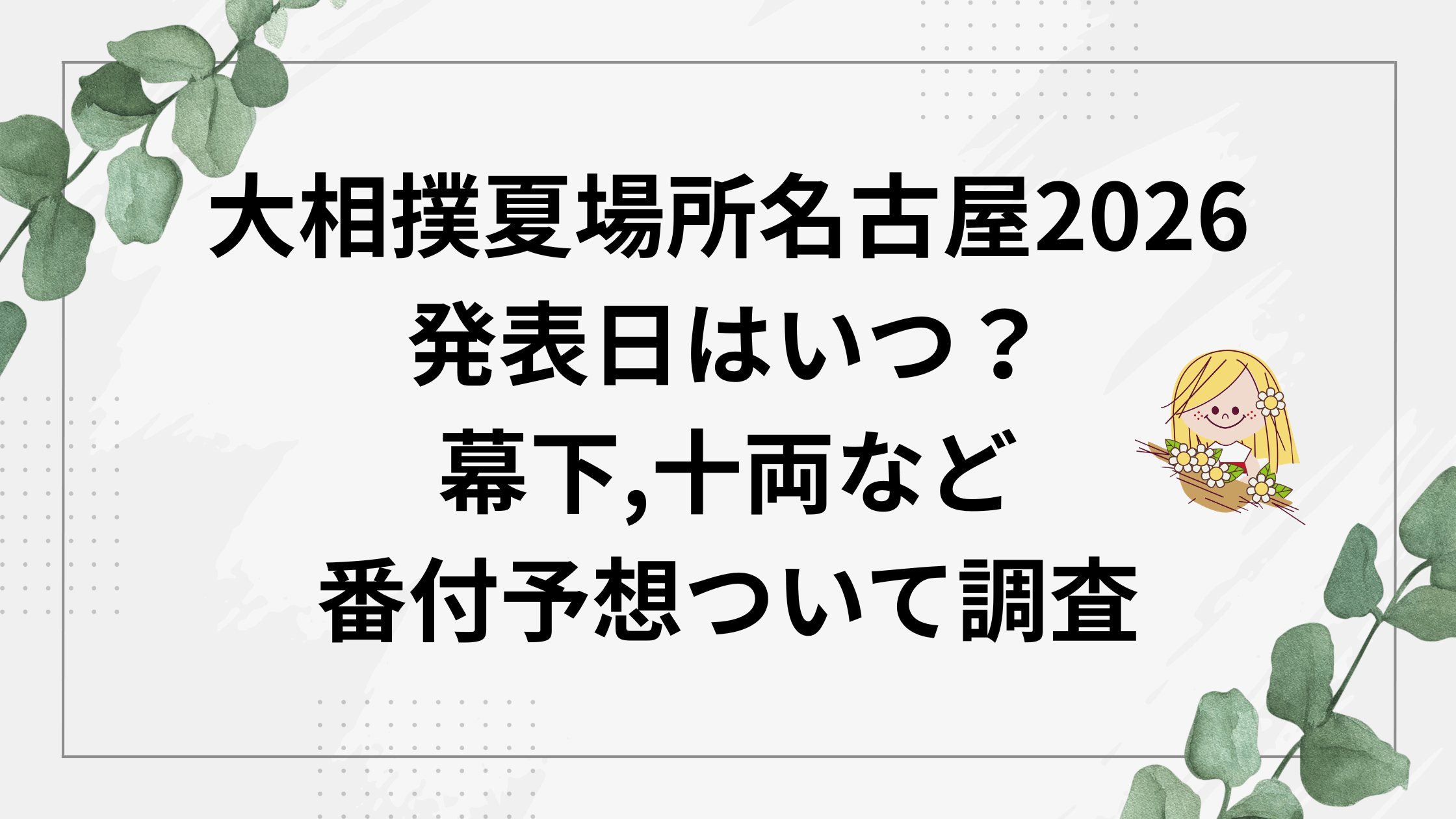 名古屋場所の番付は“5月場所が終わってから、6月第3〜4週”にかけて発表されることが多く、2026年もそのあたりを待つ感じになりそう。
