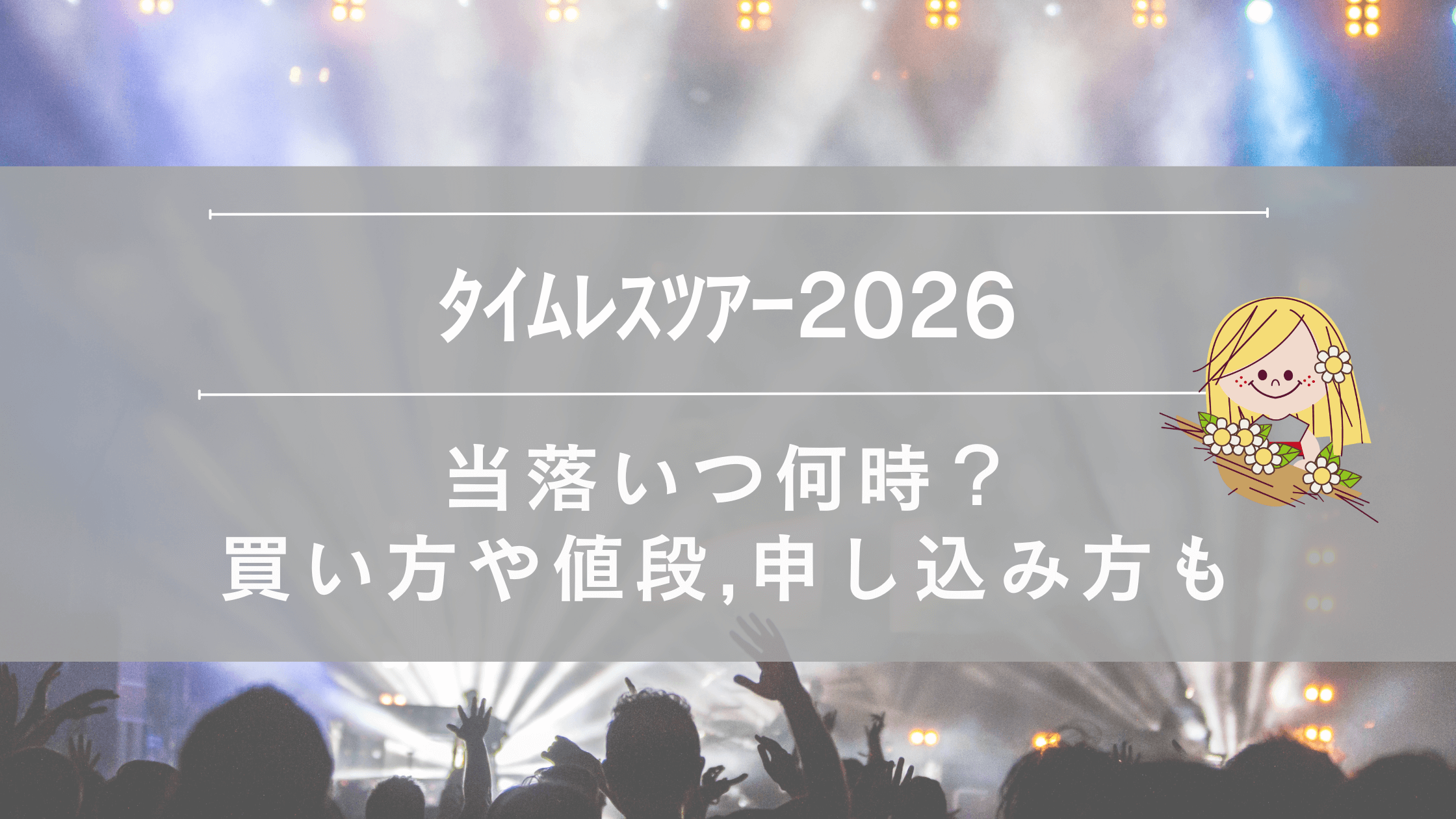 タイムレスツアー2026の発表が出てから、「いつ申し込めるの?」「当落発表って何時ごろ?」「チケット代いくらくらい?」とソワソワしている人も多いと思います。